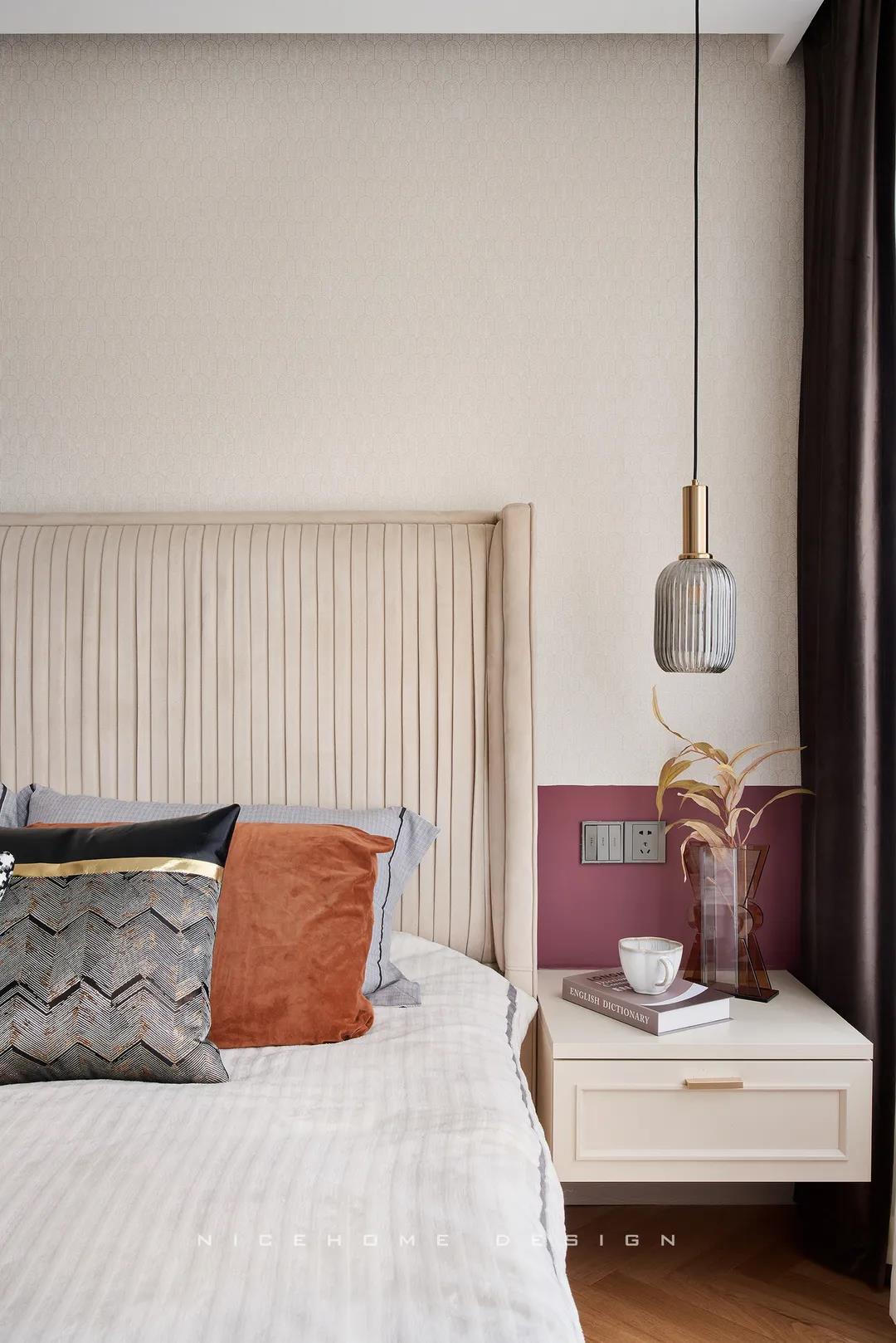 【項目·信息】 地址 / 龍湖春江天璽 戶型 / 兩室兩廳 面積 / 90㎡ 風格 / 現代風格 設計施工 / 浙江南鴻裝飾 ■ 關于屋主 本期的屋主是一位性格開朗的美麗女生,單身獨居,有兩只愛貓,本人從事媒體行業,對新家的設計有著較高要求。(小姐姐原本找的是設計公司,后來經親戚的介紹找到了南鴻,在這里要感謝小姐姐對我們的信任啦~) ■ 關于作品 如設計師所言,這套作品的風格其實并不能說完整統一,但所有混搭的元素放在一起,又相當自然協調,絲毫沒有雜亂的感覺,色彩選擇上也非常符合年輕人的口味。 Literary Style 總之,這兒的一切布置都是以宜居、舒適、溫馨為主,力求還原主人對家的所有美好期待。 ■ 關于戶型 ▲原始結構圖 ▲平面設計圖 區域整體改動不大,主要是將主臥的面積擴大,北面房間改為衣帽間,內部的衛浴室也做了空間及視覺上的延伸。 01. 客廳 LIVING ROOM “家”的定義是什么?對很多人來說,家應該是一個能讓自己卸去疲憊,認真地放空思緒,無所顧忌地虛度某些時光的空間所在。家是自由的,隨意的,它會包容我們所有的任性和小情緒。 客廳展現出純凈而輕盈的美感,來源于細腿的家具,懸空的電視柜和吊柜,還有溫柔的色彩鋪陳。頂面是無主燈,還特意做了圓弧角處理。 顏色可以直觀體現屋主的喜好。上淺下深的半墻設計佐配石膏線,散發出濃郁的復古情調,彰顯著主人的生活品味。 客餐廳同處一個空間,氣質上相互聯結,中間一盆大植栽,巧妙成為兩邊的分界。 02. 餐廳 DINING ROOM 餐廳處的元素混搭得很多,看起來卻不會眼花繚亂。淺淺的大地色鋪敘自然感美學氛圍,讓這里的每一餐美食都成為了享受。 自然感家居少不了藤編元素的加入,墻上再掛一幅文藝畫,便能做點睛之筆。至于收納,兩組高矮柜子和一層擱板,可以將各類物品安置得井井有條。 ▲喵喵簡直完美融入 03. 過道 CORRIDOR 過道墻面保持潔凈的白色,拱形門洞造就別具一格的空間體驗。 04. 廚房 KITCHEN 廚房不大,屬于剛剛好適合一個人下廚的面積。粉粉嫩嫩的顏色,正是主人的心頭好,傳遞著微妙的浪漫因子。櫥柜統一選擇無把手式,保證視覺上的清爽。 05. 臥室 BEDROOM 主臥房的采光極好,陽光灑進屋子,整個就像被和煦的光輝浸泡著,恬靜溫暖。背景墻用墻紙與乳膠漆結合,優雅的紫紅色向我們透露著一位成熟女性的美麗端莊。 猶抱琵琶的朦朧美感,有時更能引發我們關于美的想象。主衛與睡眠區之間安入了一段壓花玻璃隔斷,以其自身的凹凸質感與光線折射暈染,賦予空間曼妙體驗。 北面房間改成的衣帽間,柜體的分區+封閉式設計既讓日常衣物收納更加高效,也為主人省去了諸多打理時間。 次臥做父母或朋友來時的住處,素雅的背景有利于營造讓人安心的環境,不對稱的床頭避免了無趣的發生。飄窗墻面設計壁龕,用來收納一些雜物。 06. 衛生間 BATHROOM 兩個衛生間風格一致,深淺色的搭配讓這里既干凈明朗,又具備時髦氣質。角落里擺放花卉和綠植,默默傳達著女主人對這個家,對生活的滿滿熱愛~